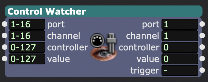 Sert à surveiller et récupérer en temps réel des valeurs de contrôle externes (MIDI, clavier, joystick, OSC, etc.) afin de les utiliser directement dans ton patch.