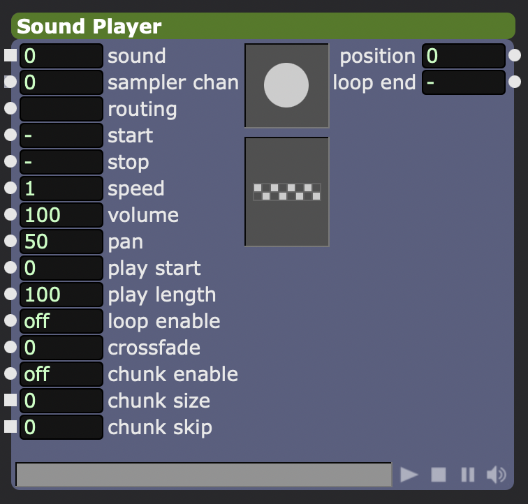 Sert à lire et contrôler des fichiers audio dans ton patch. C’est l’équivalent du MOVIE PLAYER, mais pour le son.