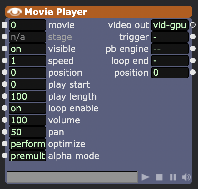Sert à charger, lire et contrôler une vidéo dans ton patch. C’est l’un des modules centraux pour travailler avec des films et des animations.