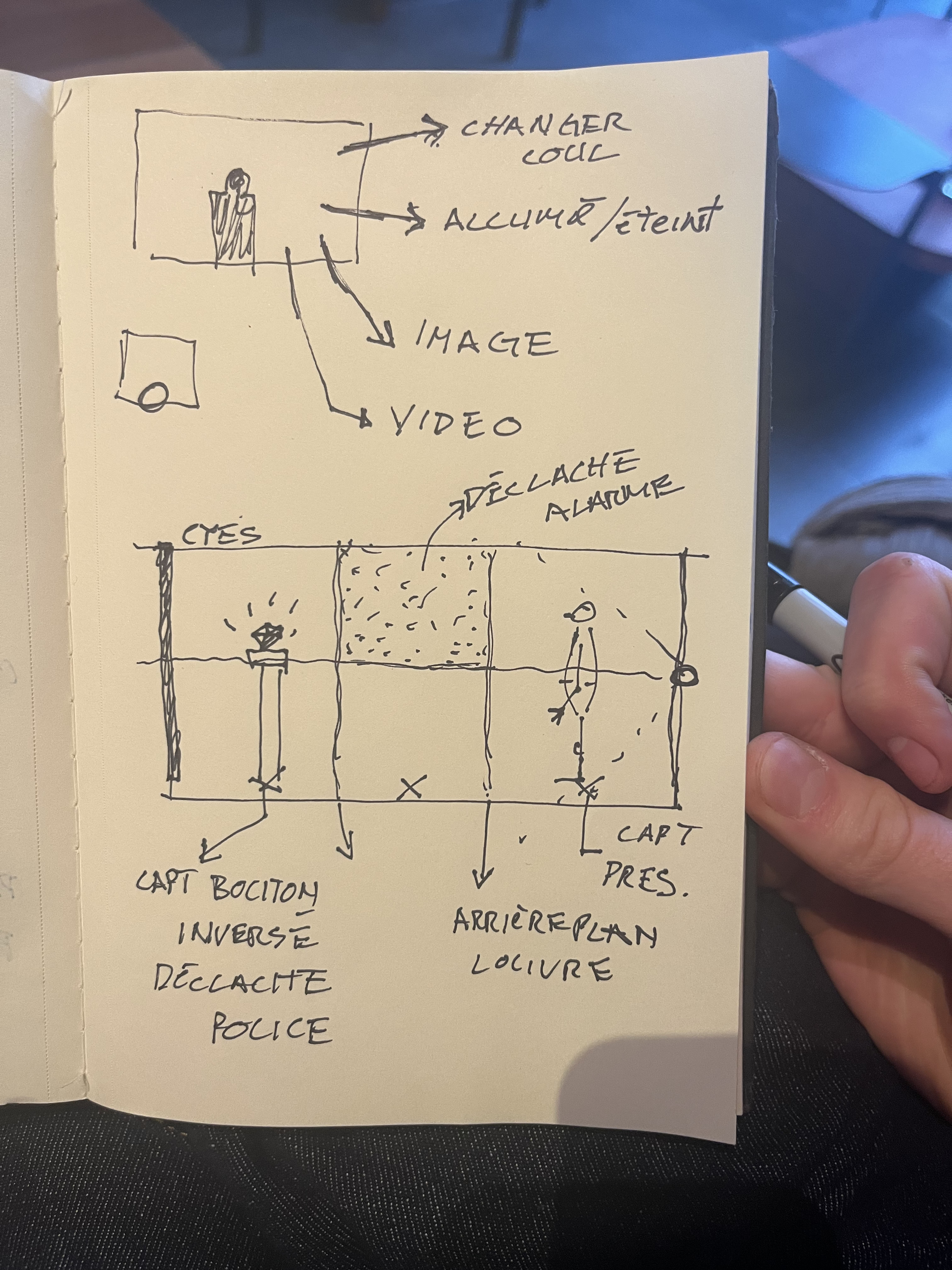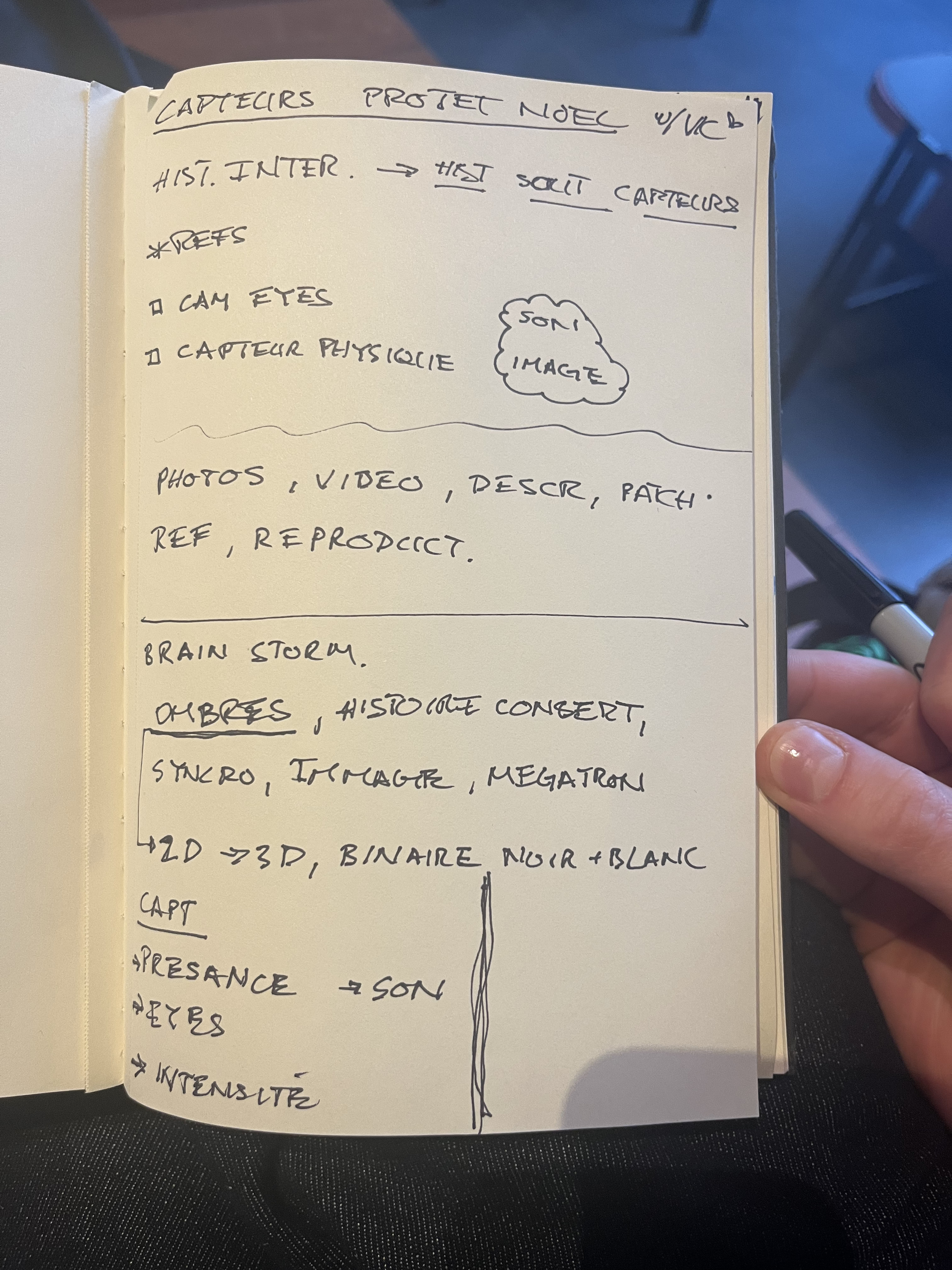 Dans le cadre du projet capteur, il s’agit de concevoir une histoire interactive racontée par une machine, à partir d’interactions issues du monde réel grâce à l’utilisation de capteurs. Le projet s’inspire des formes du théâtre d’objet, de la marionnette et de l’opéra, en mêlant narration, image et son.
